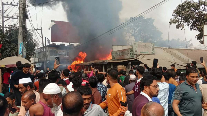 বাঙ্গড্ডা পশ্চিম বাজারের খাজা হোটেলের পাশে ভয়াবহ আগুনে ৬ টি চাঁই