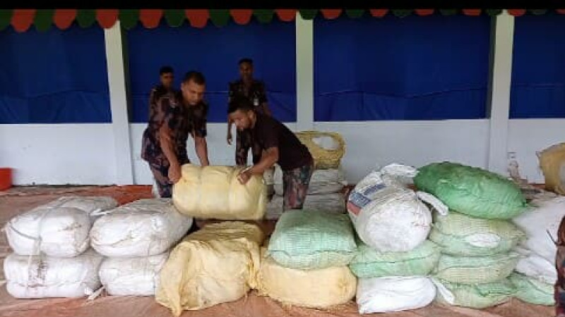 সুনামগঞ্জের সুরমা নদীতে ট্রাস্কফোর্সের অভিযান,বিপুল পরিমাণ ভারতীয় কাপড় জব্দ