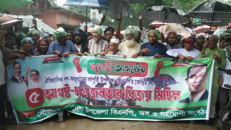 ধর্মপাশায় ৫ আগষ্ট ছাত্রজনতার বিজয় মিছিল অনুষ্টিত
