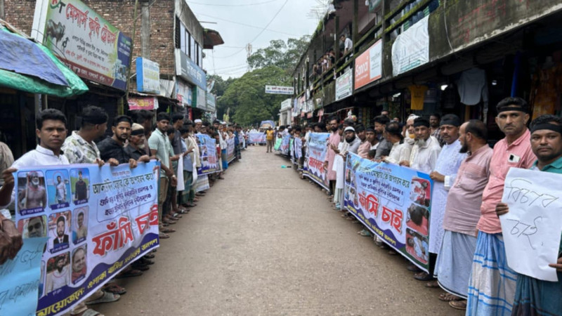 নাঙ্গলকোটে ইউপি সদস্যকে নৃশংসভাবে হত্যা, আসামীদের গ্রেফতার ও বিচারের দাবিতে মানববন্ধন