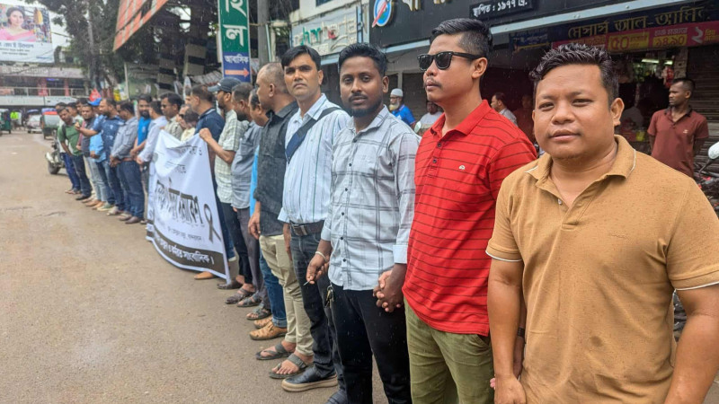 গাজীপুরে সাংবাদিক তুহিন হত্যার প্রতিবাদে বান্দরবানে মানববন্ধন