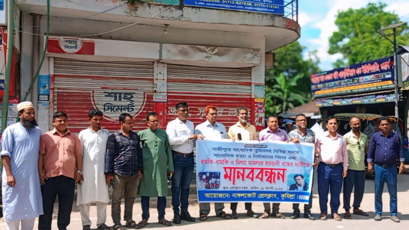 সাংবাদিক তুহিন হত্যার প্রতিবাদেরায়গঞ্জে মানববন্ধন