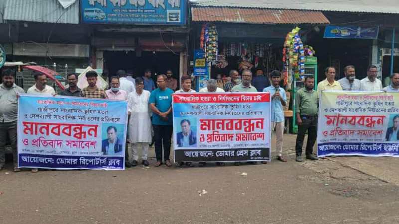 ডোমারে সাংবাদিক তুহিন হত্যার প্রতিবাদে মানববন্ধন