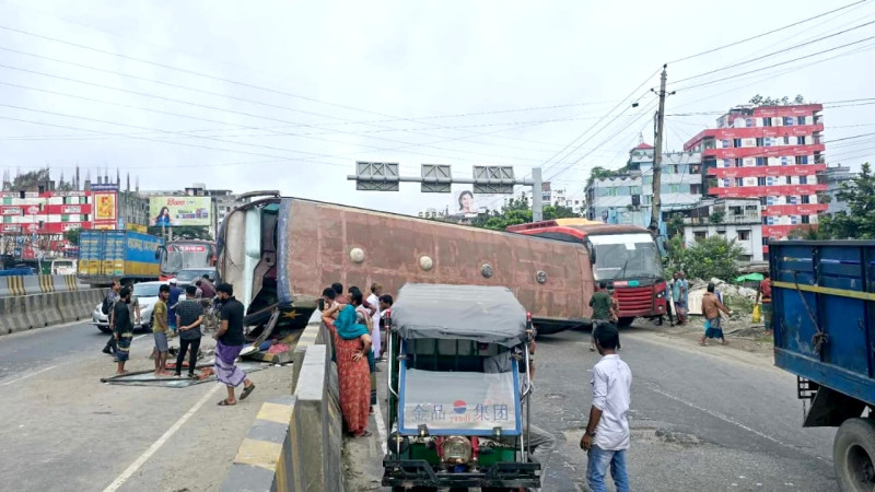 সিদ্ধিরগঞ্জে শিক্ষার্থীদের বাঁচাতে ব্রেক কষে বাস উল্টে আহত কয়েকজন