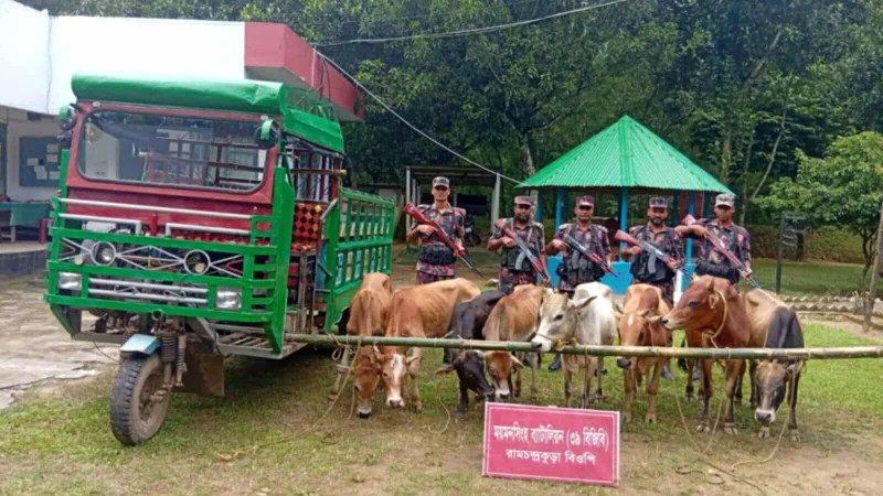 শেরপুর সীমান্তে অভিনব কায়দায় গরু পাচার ব্যর্থ,বিজিবির হাতে ধরা প্রায় ১২ লাখ টাকার পশু
