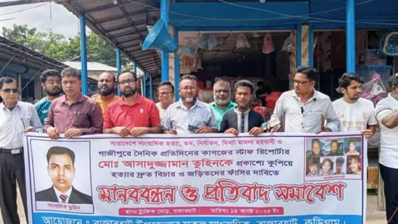 সাংবাদিক তুহিন হত্যার প্রতিবাদে ও বিচারের দাবীতে রাজারহাটে মানববন্ধন