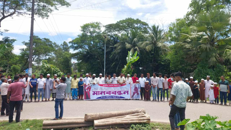 মনোহরগঞ্জে এতিমখানায় শিশু শিক্ষার্থী হত্যার বিচারের দাবিতে মানববন্ধন