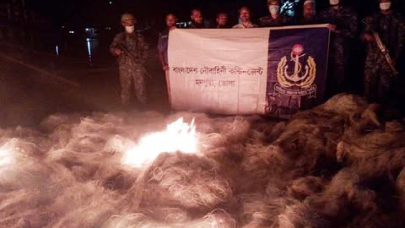 মনপুরায় নৌবাহিনীর যৌথ অভিযানে অবৈধ কারেন্ট জাল জব্দ