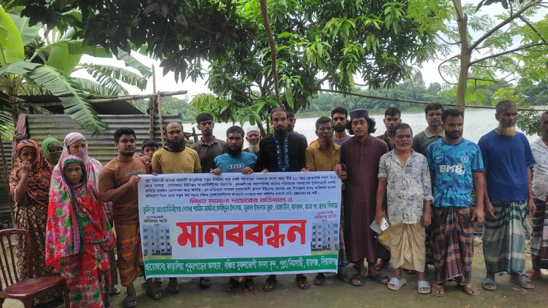 রায়গঞ্জে অসহায় সুবিধা বঞ্চিতদের উপর মিথ্যা মামলার প্রতিবাদে মানববন্ধন