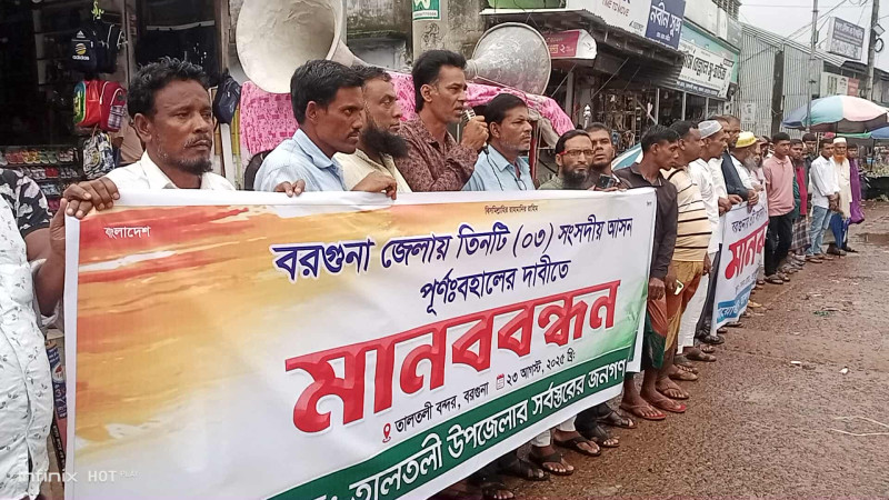 উত্তাল তালতলী জনতার ক্ষোভের বিস্ফোরণ: তিন আসন ফেরত চেয়ে বিশাল মানববন্ধন