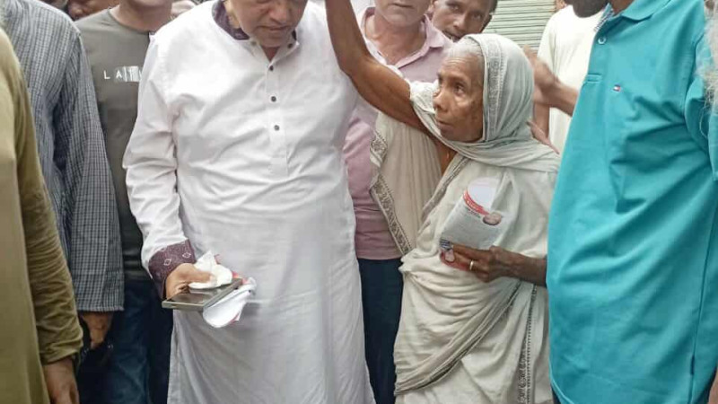 কাজিপুরে বিএনপির সাবেক সভাপতি সেলিম রেজার মাথায় প্রৌঢ়ার আশীর্বাদের হাত