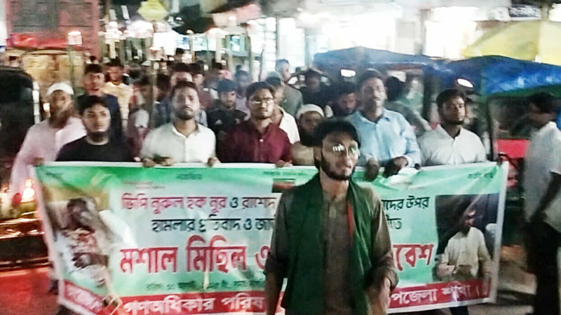 ভিপি নূরের ওপর হামলার প্রতিবাদে লালমোহনে মশাল মিছিল