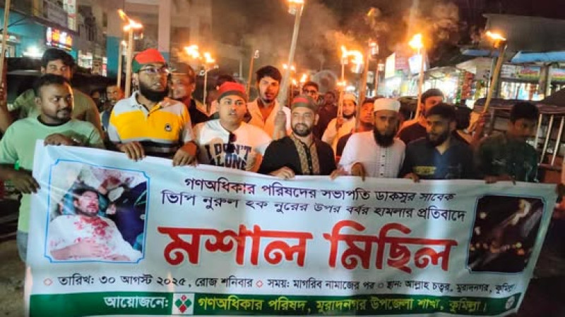 ভিপি নূরের ওপর হামলার প্রতিবাদে মুরাদনগরে মশাল মিছিল