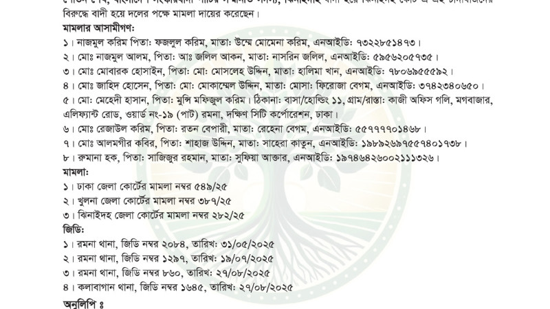 বহিষ্কৃত নেতাদের বিরুদ্ধে ঢাকাসহ দুই জেলায় মামলা করলেন বিআরপি