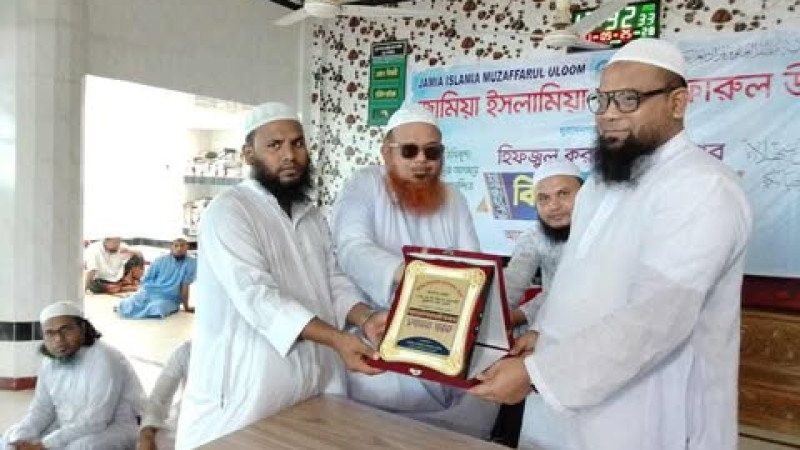 মুরাদনগরে সমাপনী শিক্ষার্থীদের পক্ষ থেকে মুফতি আমজাদ হোসাইনকে সংবর্ধনা