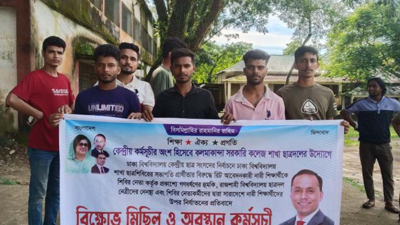 নারী শিক্ষার্থীদের হুমকি ও হেনস্তার প্রতিবাদে কলমাকান্দায় ছাত্রদলের বিক্ষোভ