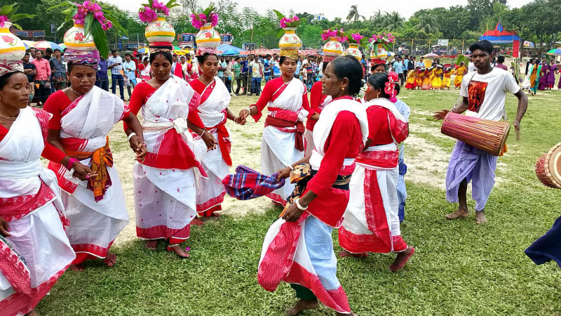 পত্নীতলায় নেচে গেয়ে কারাম উৎসব উদযাপন