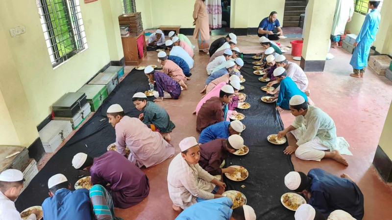 সেনবাগ প্রবাসী কল্যাণ সংস্থার উদ্যোগে মাদ্রাসা শিক্ষার্থীদের জন্য খাবার পরিবেশন
