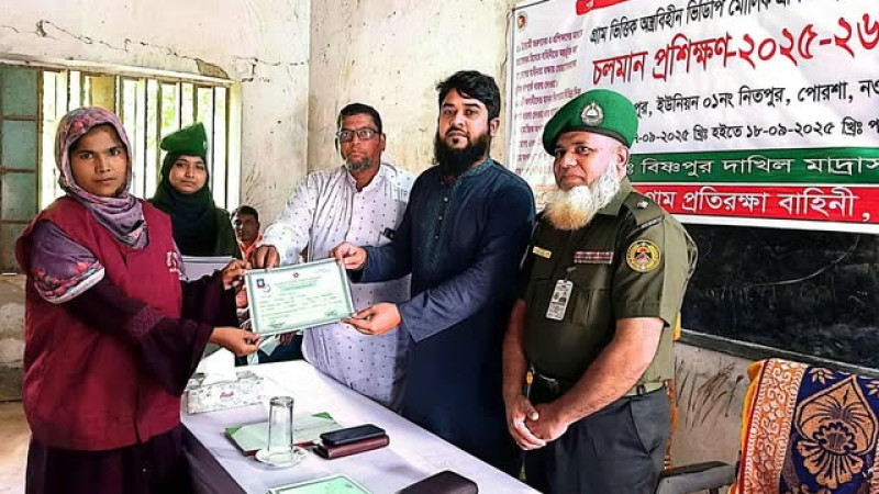 পোরশায় ভিডিপি সদস্যদের মাঝে প্রশিক্ষণ সনদ তুলে দিলেন ইউএনও রাকিবুল ইসলাম