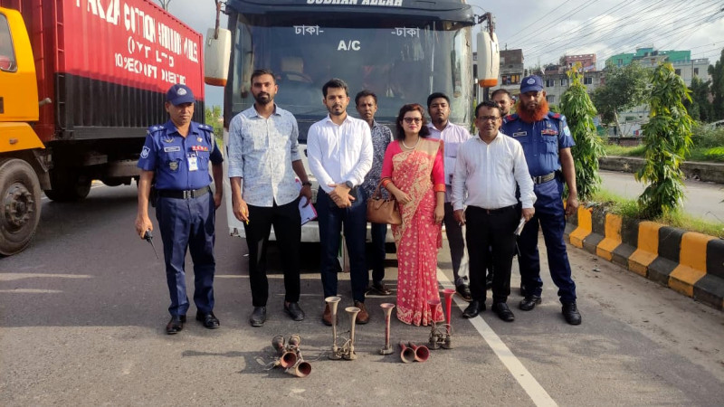 নারায়ণগঞ্জে শব্দদূষণকারী ৫ যানবাহনে জরিমানা
