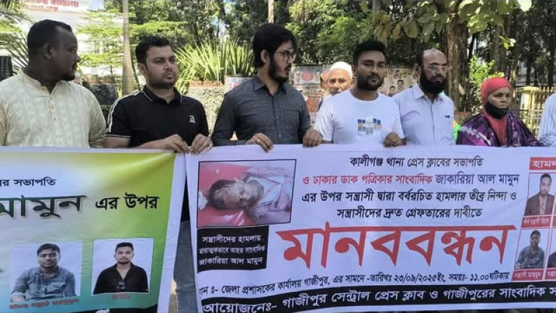 সাংবাদিক জাকারিয়ার ওপর হামলার প্রতিবাদে মানববন্ধন ও বিক্ষোভ সমাবেশ অনুষ্ঠিত