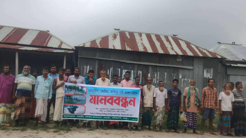 যমুনা নদীর পূর্বপাড় ভাঙন রোধে এলাকাবাসীর মানববন্ধন