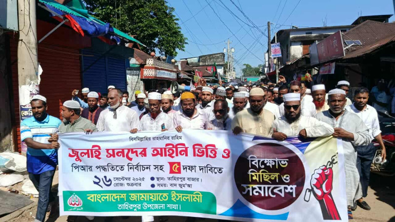 জুলাই সনদের ভিত্তিতে নির্বাচনের দাবিতে তাহিরপুরে জামায়াতের সমাবেশ