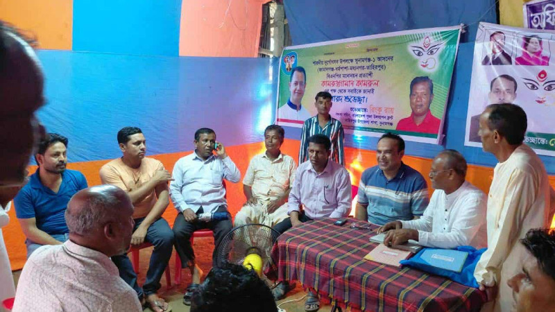 তাহিরপুরে শারদীয় দুর্গোৎসবের আনন্দে পাশে ইউপি চেয়ারম্যান মুরাদ