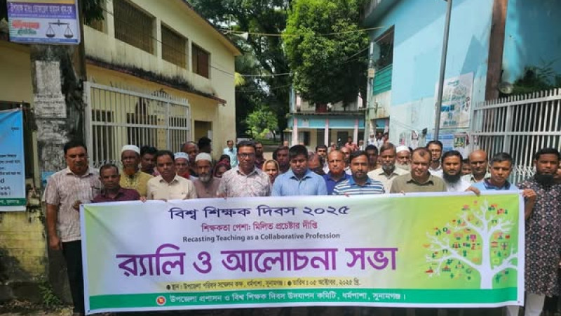 ধর্মপাশায় বিশ্ব শিক্ষক দিবস উপলক্ষে র্যালি ও আলোচনা সভা