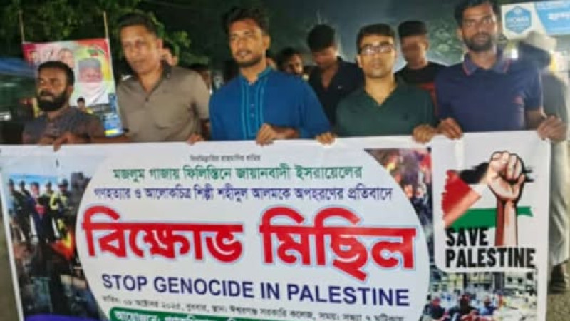 ফিলিস্তিনে আটক শহিদুল আলমকে মুক্তির দাবিতে ঈশ্বরগঞ্জে বিক্ষোভ মিছিল