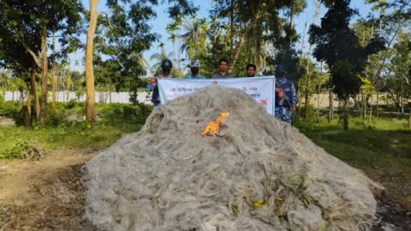 মনপুরার মেঘনায় মৎস্য দপ্তর ও কোস্টগার্ডের অভিযানে আটক কারেন্ট জাল!আগুনে পুড়িয়ে ধ্বংস
