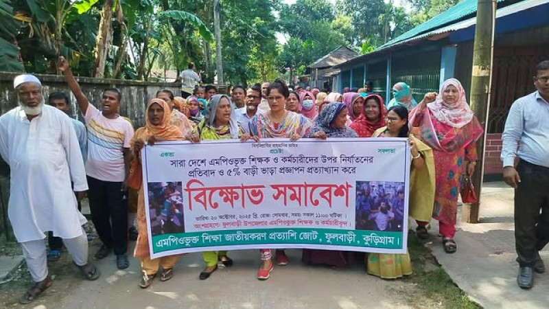 ফুলবাড়ীতে এমপিওভূক্ত শিক্ষক ও কর্মচারীদের বিক্ষোভ মিছিল ও সমাবেশ।