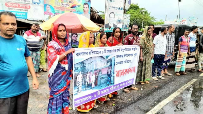 রামপালে পথের দাবিতে অবরুদ্ধ দলিত পরিবারের মানববন্ধন