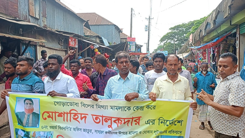 মধ্যনগরে হামলা-মামলার প্রতিবাদে বিক্ষোভ মিছিল
