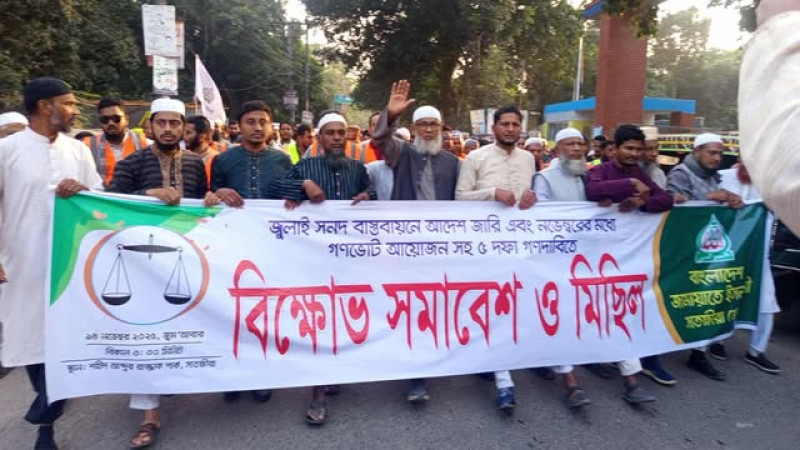 নভেম্বরের মধ্যে গণভোটসহ ৫ দফা দাবিতে সাতক্ষীরায় জামায়াতের বিক্ষোভ মিছিল