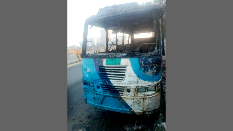 চিটাগাং রোডে পার্কিং করা মিনিবাসে আগুন