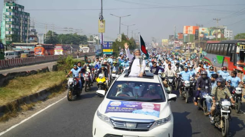 কুমিল্লা-৬ সংসদীয় আসনের জামায়াত নেতা কাজী দ্বীন মোহাম্মদ'র বিশাল মোটর শোভাযাত্রা