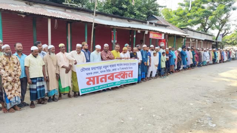 ফুলবাড়ীয়ায় মাদক, জুয়া ও নারী কেলেঙ্কারি বন্ধে এলাকাবাসীর মানববন্ধন
