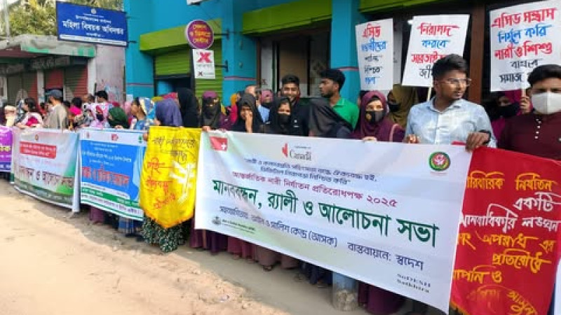 নারী ও কন্যা শিশুর প্রতি সহিংসতা বন্ধে সাতক্ষীরায় মানববন্ধন ও আলোচনা সভা