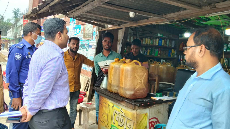 জ্বালানি তেলের দোকানে ভ্রাম্যমাণ আদালতের অভিযান ১০ হাজার টাকা জরিমানা