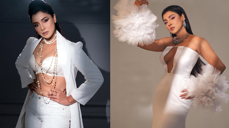 শুভ্র পোশাকে আবেদনময়ী রুনা খান