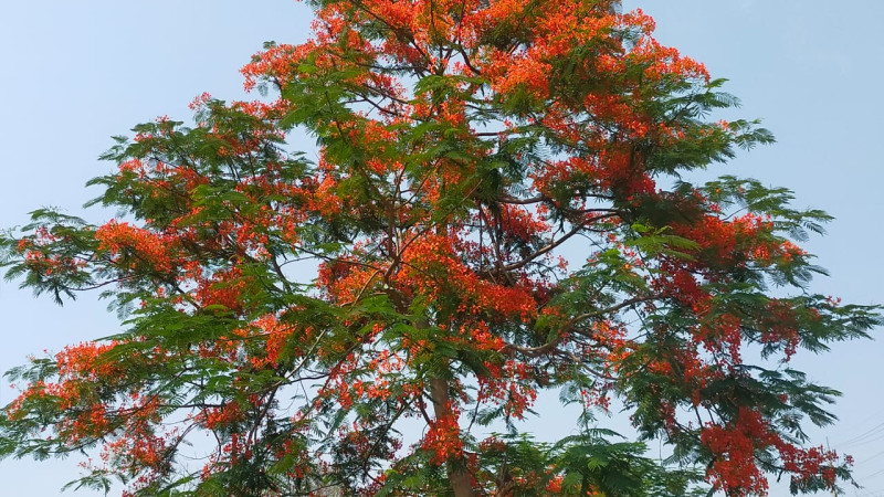 বান্দরবানে কৃষ্ণচূড়ার লালে সেজেছে প্রকৃতি