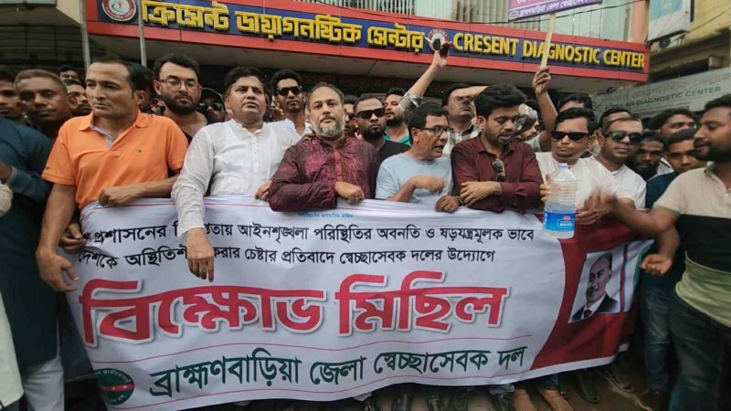 ব্রাহ্মণবাড়িয়ায় স্বেচ্ছাসেবক দলের বিক্ষোভ