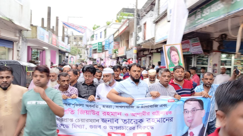 তারেক রহমানের বিরুদ্ধে মিথ্যাচারের প্রতিবাদে চাটখিলে বিক্ষোভ মিছিল