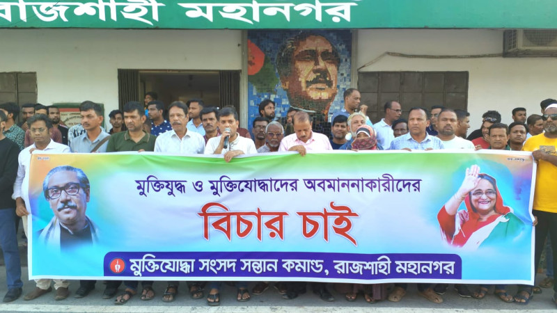 রাজশাহীতে মুক্তিযোদ্ধা সংসদ সন্তান কমান্ডের বিক্ষোভ ও পথসভা