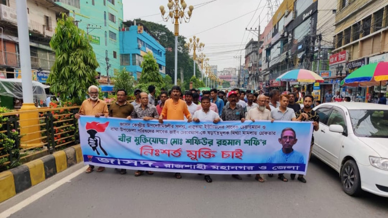 বীর মুক্তিযোদ্ধা শফির মুক্তির দাবীতে রাজশাহীতে জাসদের বিক্ষোভ মিছিল ও সমাবেশ
