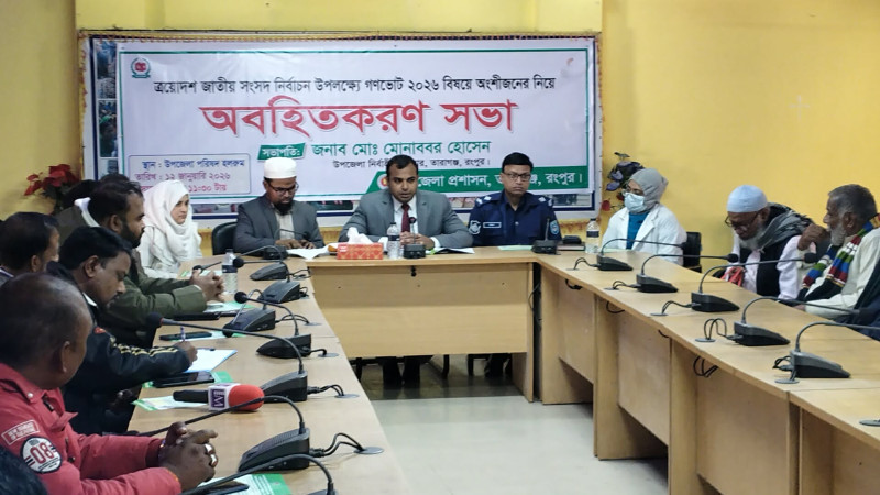 উলিপুরে ত্রয়োদশ জাতীয় সংসদ নির্বাচন ও গণভোট উপলক্ষে প্রার্থীদের সঙ্গে মতবিনিময় সভা অনুষ্ঠিত