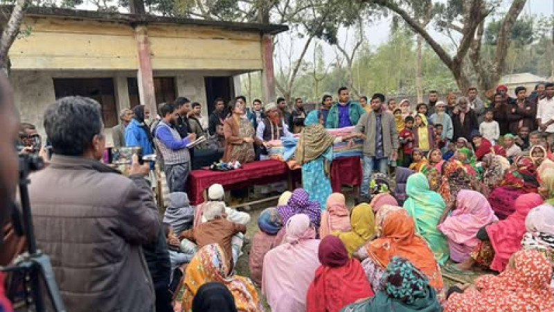 নীলফামারীর কিশোরগঞ্জ উপজেলার ময়নাকুড়ি এলাকায় অসহায় মানুষের মাঝে কম্বল বিতরণ