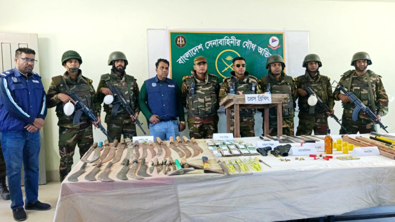 আড়াইহাজারে চরাঞ্চলে যৌথবাহিনীর অভিযান: বিপুল অস্ত্র ও ককটেল উদ্ধার, আটক ৫