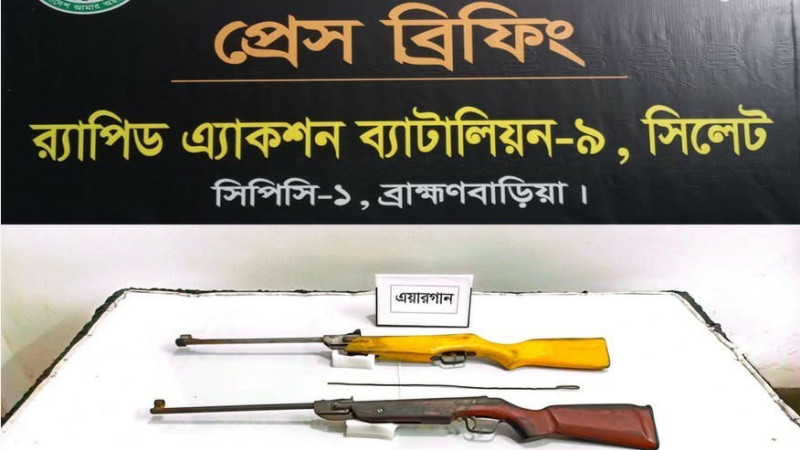 ব্রাহ্মণবাড়িয়ায় দু'টি এয়ারগান ও ৪৪০ গুলি উদ্ধার